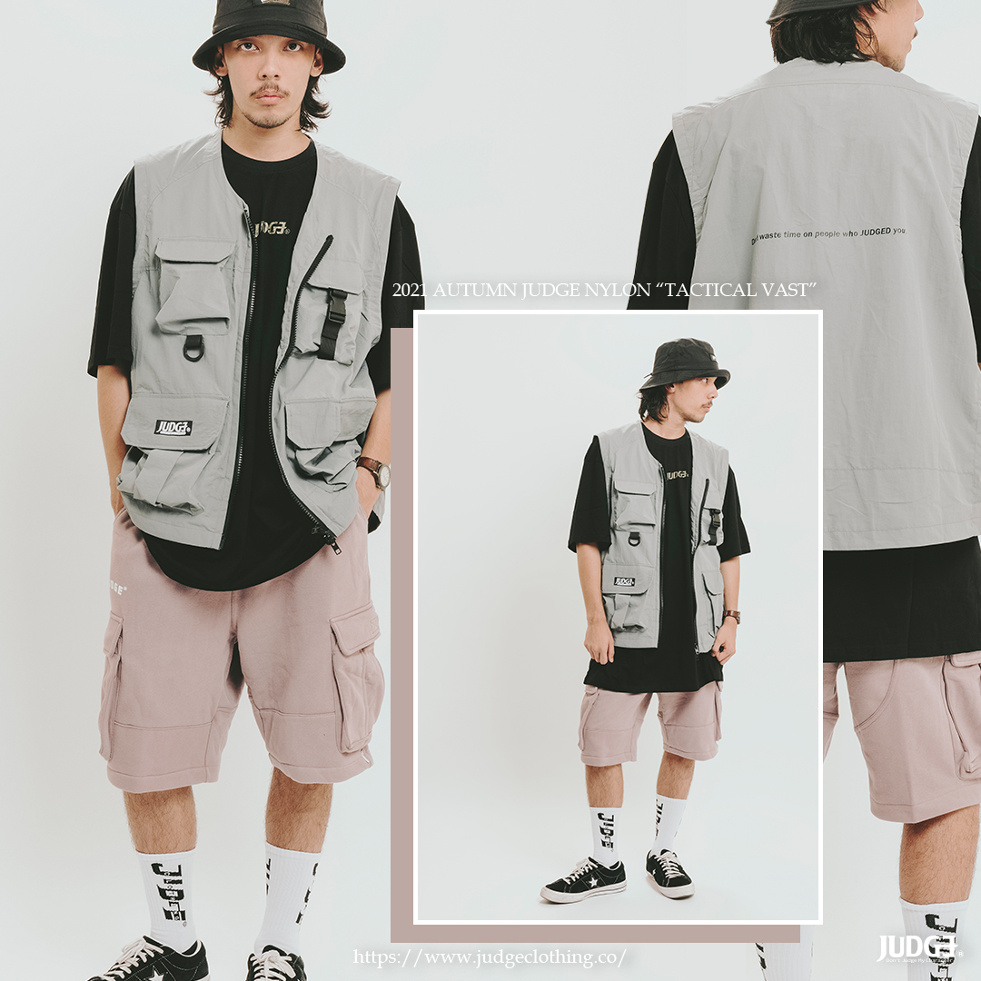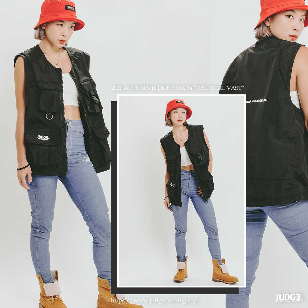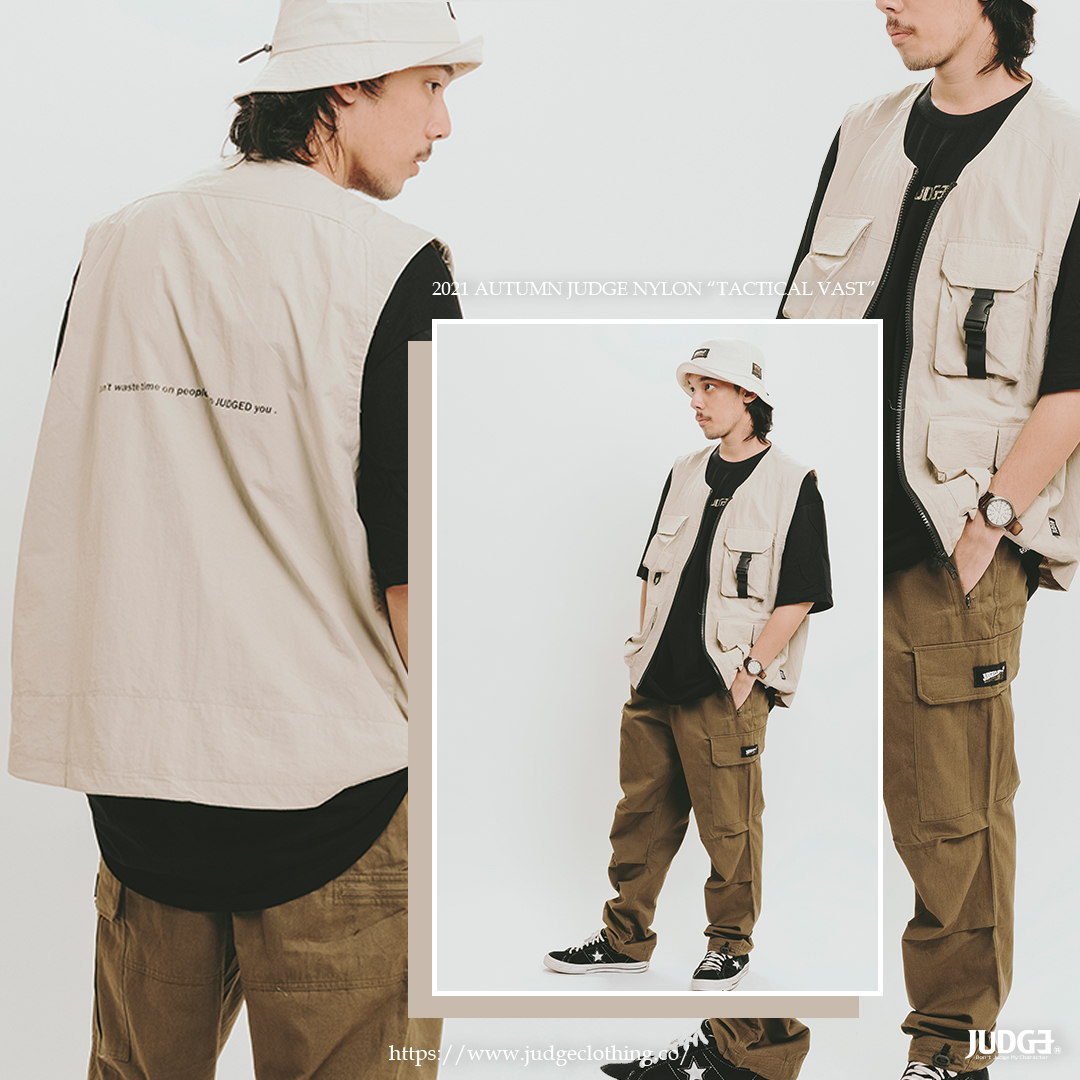 [ 秋天外搭多口袋戰術背心,JUDGE經典小標搭配